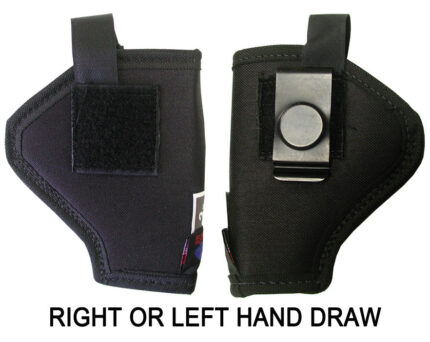 Ph#: 954-571-2121This black nylon holster will hold most blank-firing handguns. This durable belt holster has a heavy-duty, high-tension belt clip that can be switched to either side to allow for left or right handed use. Two strips of velcro hold the gun snugly in place..380, 3″ and 4″ Barrel lengths also available.